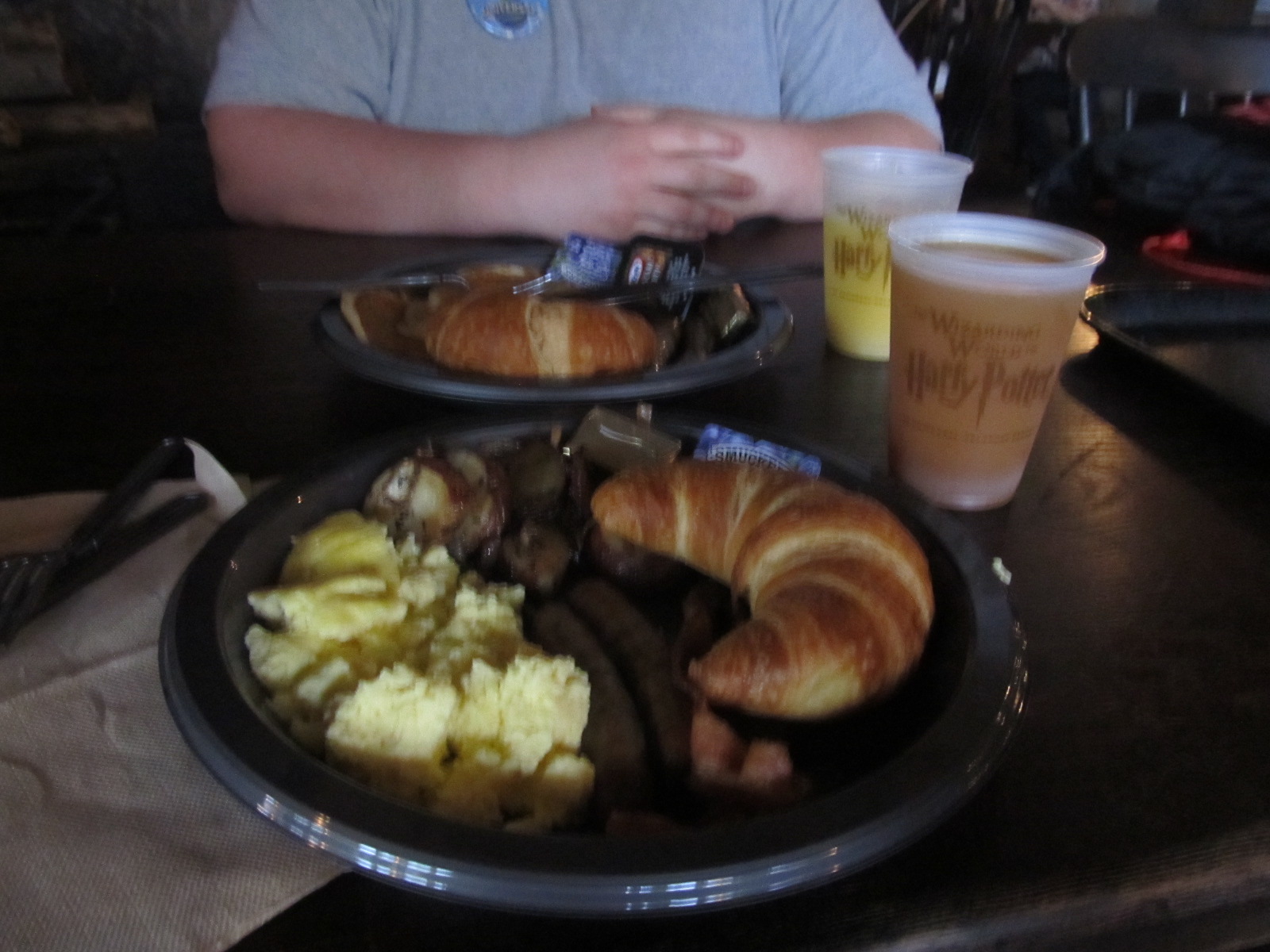 We had our first of two breakfasts at Three Broomsticks in Hogsmeade. Delicious! I tried the pumpkin juice there – Not bad!