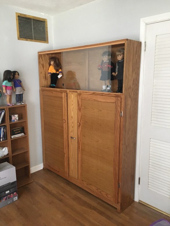 Al’s dad was delivering the custom doll cabinet and wardrobe, so I needed to clear the space!