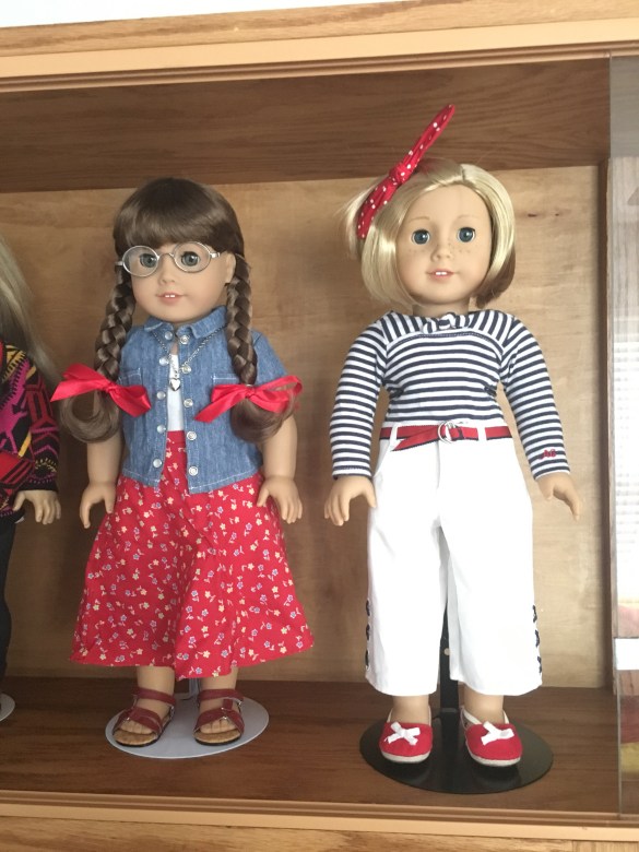 On the left, Stephanie is the American Girl doll I’ve had since I was nine years old. She’s 20 now! And Molly was my dream doll. I bought her in 2013.