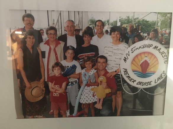 I recently shared this throwback photo on Facebook. This is framed in my parents’ house. We went on two cruises as a family with my dad’s parents. This was on “The Big Red Boat” in the mid-1990s, when we went to Cozumel and Cancun. You can see my dad holding my big Big Bird at the bottom.