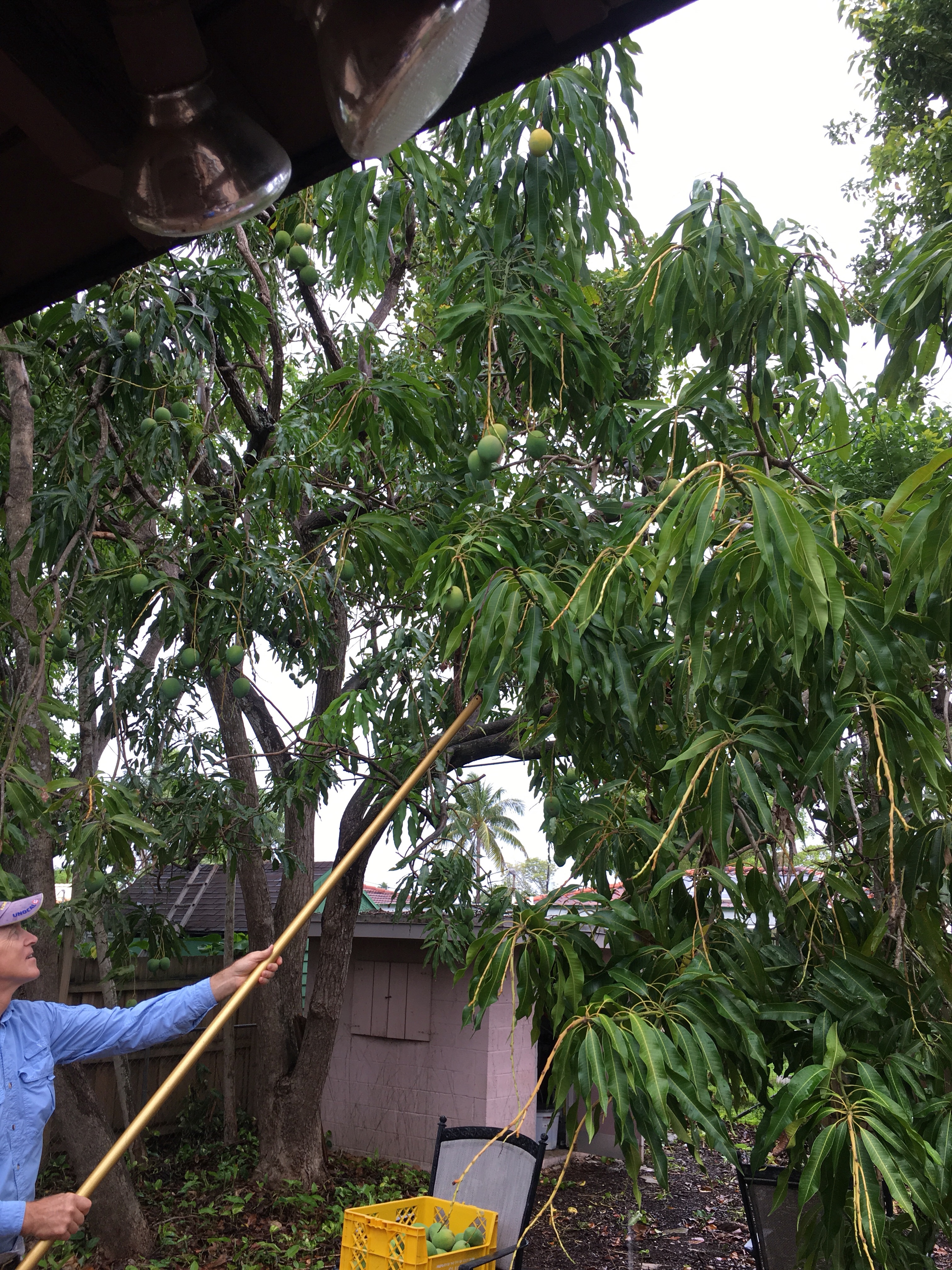 That’s Tim, using the special mango picker. We also picked a bunch with pruners, and by hand!