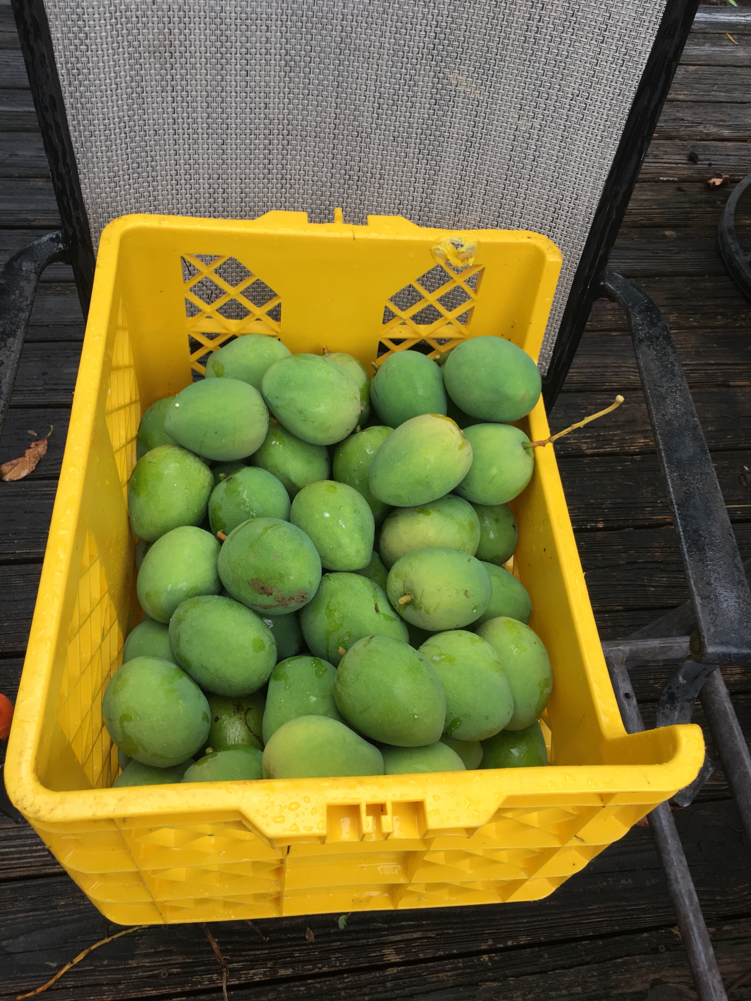 We filled this crate, and two other big boxes, full of mangoes. My dad printed signs for the boxes, imploring people in the neighborhood to come and take mangoes!