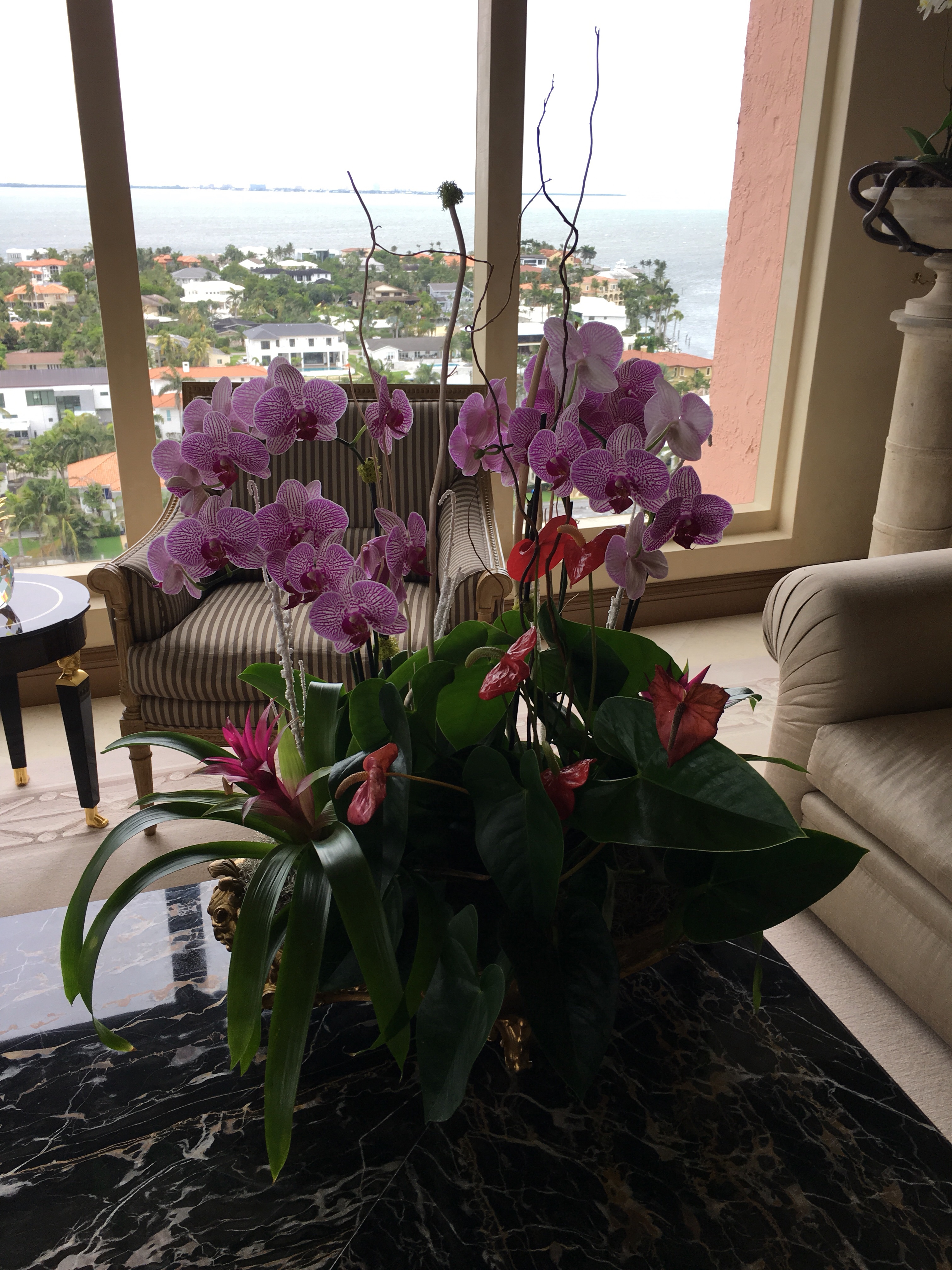 Terri and Walter’s condo is on the 15th floor, and the elevator stops at their place. Such opulence! A few steps in, there are gorgeous floor-to-ceiling windows that give a panoramic view of Miami, Key Biscayne, and more.