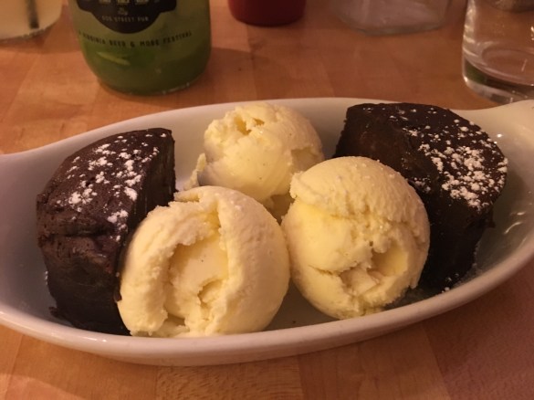 We weren’t quite full after our entrees, but we decided to spring for dessert and their signature mock-tails. For dessert, I chose their Flourless Chocolate Torte, and Al had their Burnt Sugar ice cream. Al had the “Moscow Pony” mock-tail, and I had their “No-Jito” mock-tail. They were awesome!