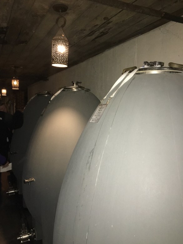 These are the three concrete eggs that hold the white wines.