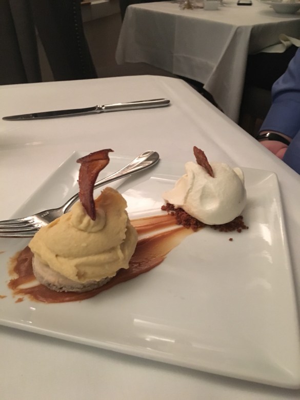 For dessert, Al got the Pumpkin Cheesecake, and I had the Poached Apple Tart.