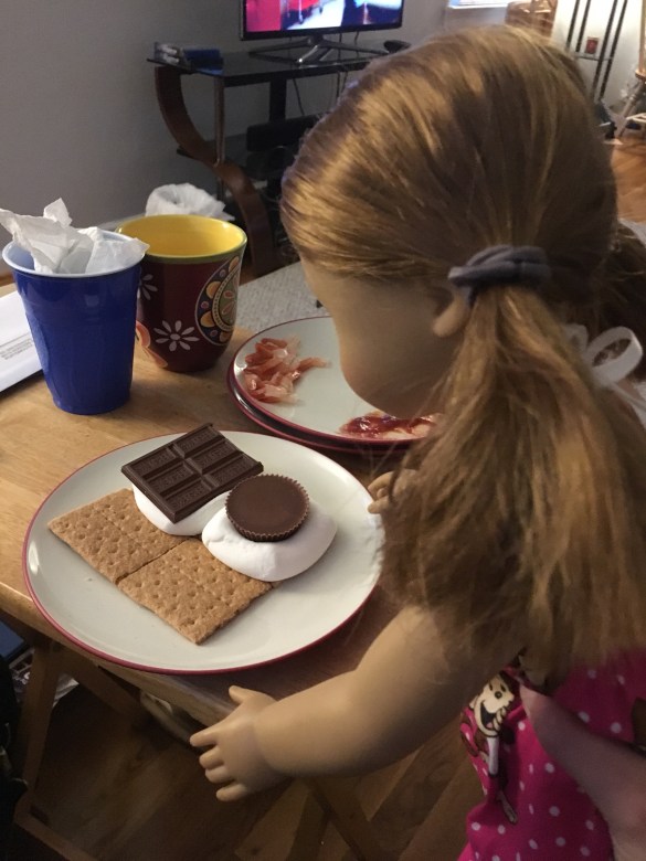 For dessert, we made s’mores in the microwave! We had the traditional Hershey’s chocolate, but I also had one with a Reese’s peanut butter cup. Yummy!